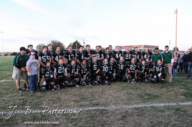 The Central Plains Oilers line up for a team photo following the KSHSAA Eight Man Division I Regional Football game between Spearville and Central Plains with Central Plains winning 42 to 40 at Central Plains High School in Claflin, Kansas on November 8, 2014. (Photo: Joey Bahr, www.joeybahr.com)