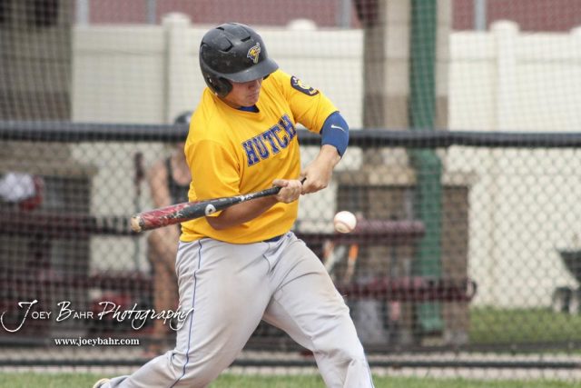Hutchinson Colt Palmer Hutchinson (#3) swings at a pitch in the top of the first inning. The McPherson American Legion Post 24 AAA Seniors defeated the Hutchinson American Legion Post 68 AAA Colts 6 to 4 to advance to the AAA Zone 8 Championship at the Great Bend Sports Complex in Great Bend, Kansas on July 15, 2017. (Photo: Joey Bahr, www.joeybahr.com)undefined