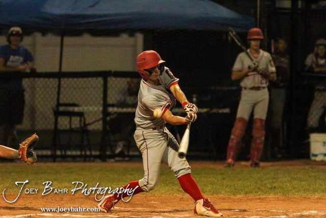 Great Bend Braves #1 Keaton Reneau fouls off a ball. The Great Bend Braves won their first round game over Doniphan County 14 to 4 in the American Legional Class A Baseball State Tournament at the Great Bend Sports Complex in Great Bend, Kansas on July 20, 2016. (Photo: Joey Bahr, www.joeybahr.com)undefined