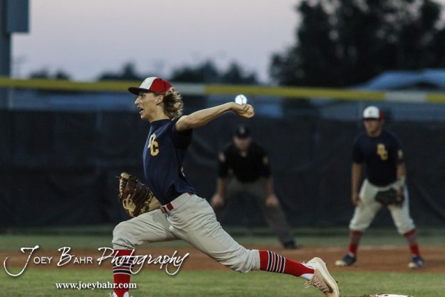 Doniphan County #15 Zebadiah Speer throws a pitch. The Great Bend Braves won their first round game over Doniphan County 14 to 4 in the American Legional Class A Baseball State Tournament at the Great Bend Sports Complex in Great Bend, Kansas on July 20, 2016. (Photo: Joey Bahr, www.joeybahr.com)undefined