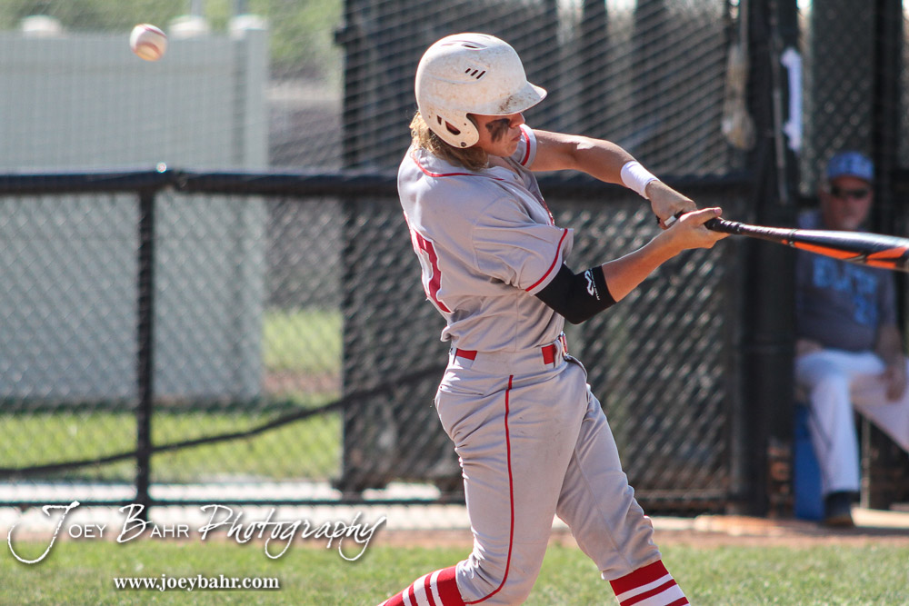 Great Bend Chief Jared Maneth (#17) fouls back a pitch in the top of the First Inning. The Great Bend Chiefs won the AAA Lower Zone 1 & 2 Tournament by defeating the Garden City Elite 10 to 4 at Great Bend Sports Complex in Great Bend, Kansas on July 18, 2016. (Photo: Joey Bahr, www.joeybahr.com)undefined