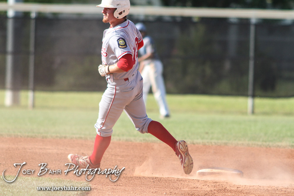 Great Bend Chief Payton Mauler (#12) rounds second after stealing the base in the Fourth Inning. The Great Bend Chiefs won the AAA Lower Zone 1 & 2 Tournament by defeating the Garden City Elite 10 to 4 at Great Bend Sports Complex in Great Bend, Kansas on July 18, 2016. (Photo: Joey Bahr, www.joeybahr.com)undefined