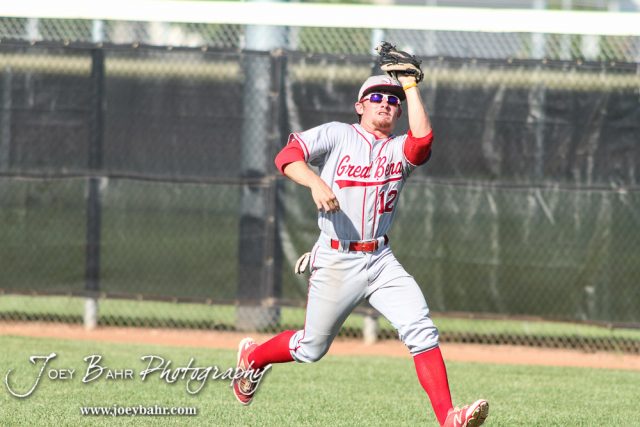 Great Bend Chief Payton Mauler (#12) catches a fly ball for an out in the bottom of the Fourth Inning. The Great Bend Chiefs won the AAA Lower Zone 1 & 2 Tournament by defeating the Garden City Elite 10 to 4 at Great Bend Sports Complex in Great Bend, Kansas on July 18, 2016. (Photo: Joey Bahr, www.joeybahr.com)undefined
