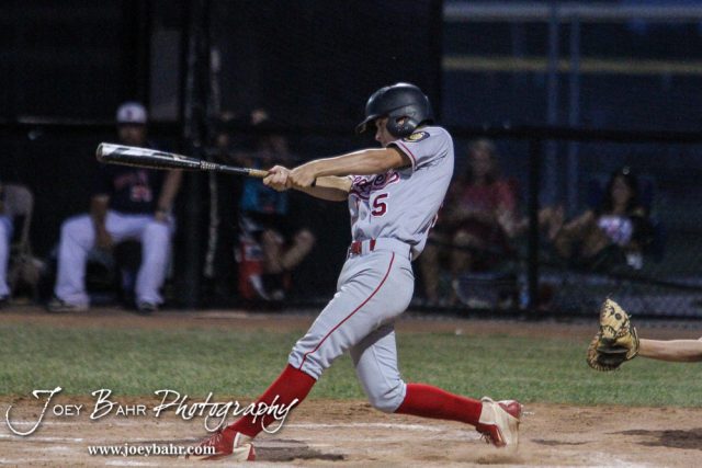 Great Bend Braves #5 Brayden Powell swings at a pitch. The Buhler Nationals defeated the Great Bend Braves 7 to 3 in the American Legional Class A Baseball State Tournament Semifinal at the Great Bend Sports Complex in Great Bend, Kansas on July 21, 2016. (Photo: Joey Bahr, www.joeybahr.com)undefined