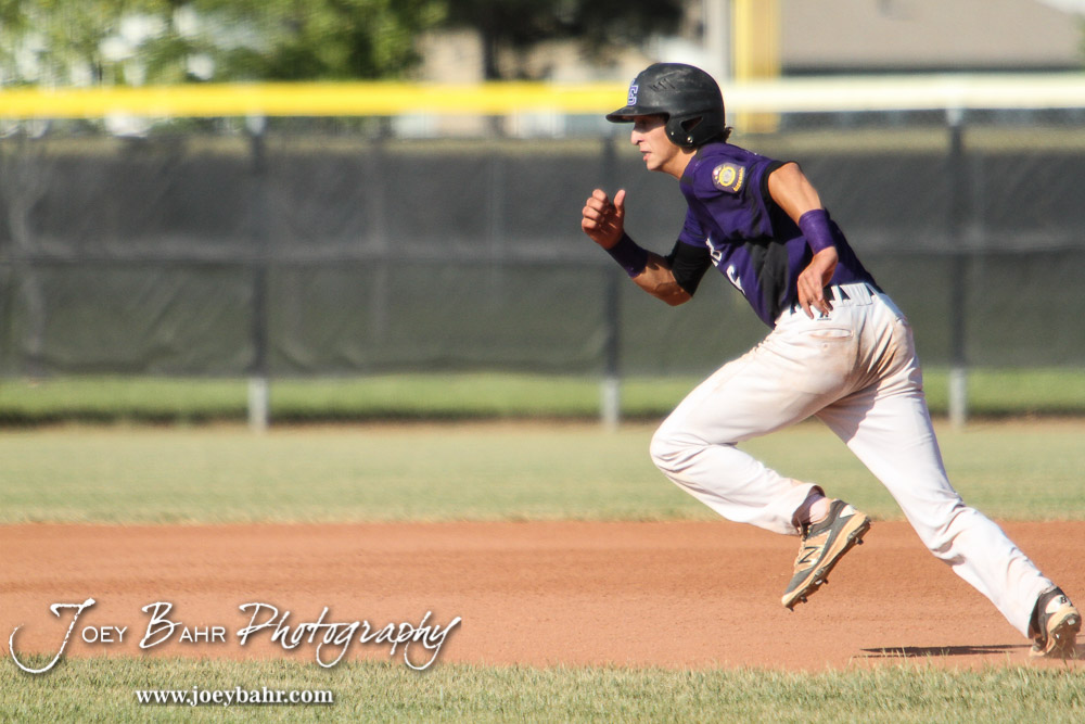 Arkansas City Grays #6 Andrew Brautman takes off towards Second Base. The Arkansas City Grays won over the Salina Hawks 12 to 5 in the American Legional Class A Baseball State Tournament Semifinal at the Great Bend Sports Complex in Great Bend, Kansas on July 21, 2016. (Photo: Joey Bahr, www.joeybahr.com)undefined