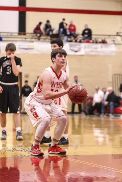 Great Bend Panther #10 Dalton Miller shoots a free throw attempt. The Buhler Crusaders defeated the Great Bend Panthers by a score of 44 to 36 the Great Bend High School Field House in Great Bend, Kansas on January 12, 2018. (Photo: Joey Bahr, www.joeybahr.com)undefined