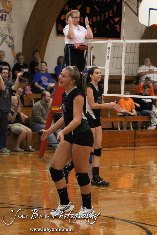 Central Plains Lady Oiler Breanna Holmes (#10) celebrates winning a point during Otis-Bison Volleyball Triangular at the Otis-Bison High School in Otis, Kansas on September 25, 2012. (Photo: Joey Bahr, www.joeybahr.com)