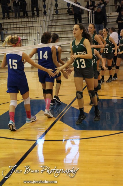 during the 2013 Central Prarie League Junior High Varsity Volleyball Tournament Championship Match with Central Plains winning the match in two games at Ness City High School in Ness City, Kansas on October 12, 2013. (Photo: Joey Bahr, www.joeybahr.com)
