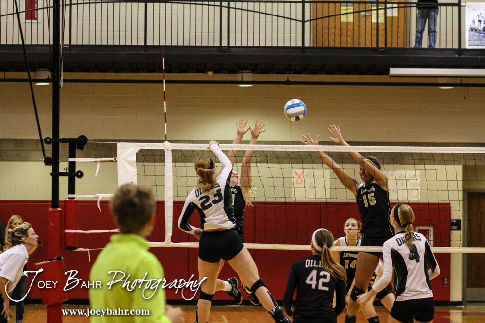 Central Plains Lady Oiler Kylee Kasselman (#23) goes for a kill during the 2014 Central Prairie League Volleyball Tournament at Hoisington Activity Center in Hoisington, Kansas on October 18, 2014. (Photo: Joey Bahr, www.joeybahr.com)