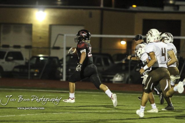 Great Bend Panther #29 Gage Fritz rushes for another touchdown in the first quarter. The Great Bend Panthers defeated the Garden City Buffaloes 49 to 6 at Memorial Stadium in Great Bend, Kansas on October 19, 2018. (Photo: Joey Bahr, www.joeybahr.com)undefined