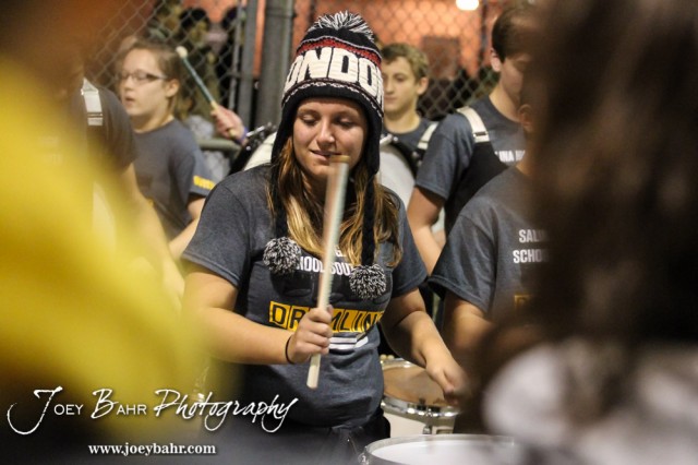 The Salina South Cougar Drum Line perform following the Great Bend versus Salina South High School football game with Salina South winning 56 to 13 at Salina Stadium in Salina, Kansas on November 1, 2013. (Photo: Joey Bahr, www.joeybahr.com)