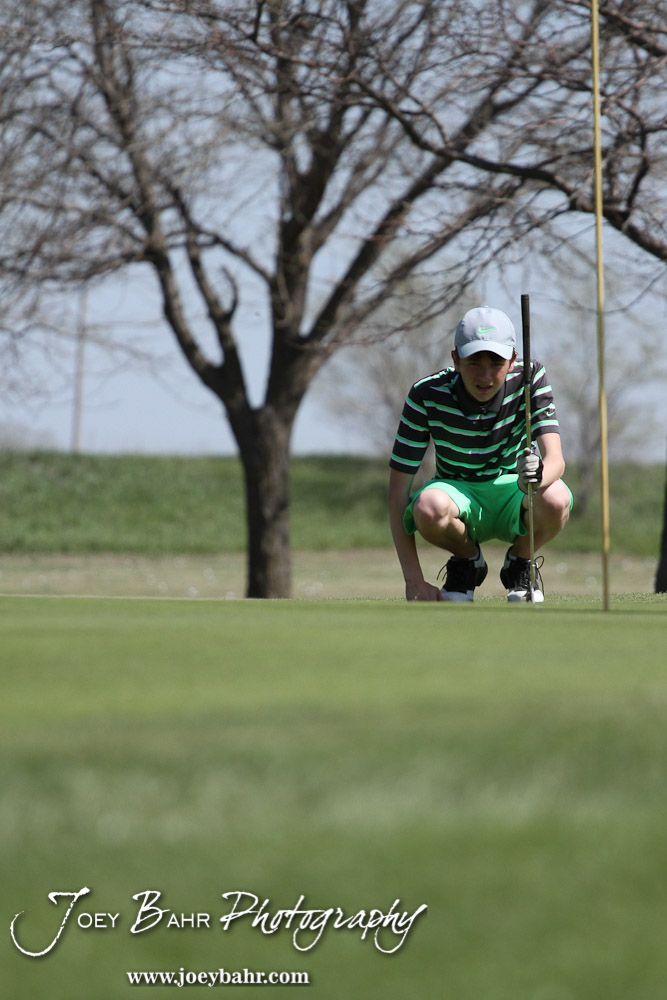 Salina South Cougar Tim Kroeker reads the green during the Great Bend High School Boys Golf Invitational Tournament at The Club at Stoneridge in Great Bend, Kansas on April 29, 2013. (Photo: Joey Bahr, www.joeybahr.com)