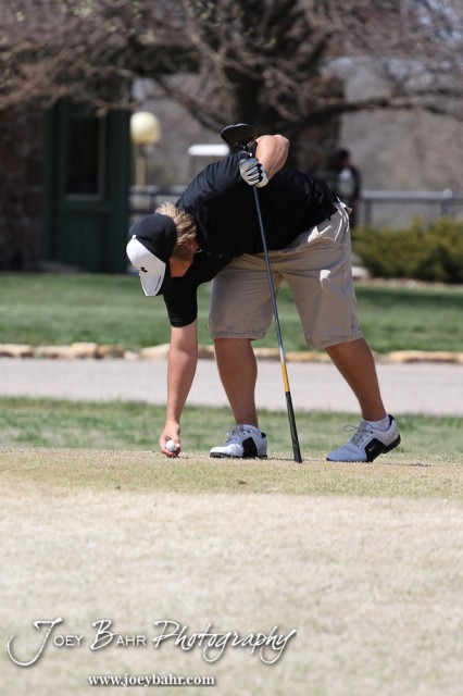 Great Bend Panther Matt Marshall tees up his ball during the Great Bend High School Boys Golf Invitational Tournament at The Club at Stoneridge in Great Bend, Kansas on April 29, 2013. (Photo: Joey Bahr, www.joeybahr.com)