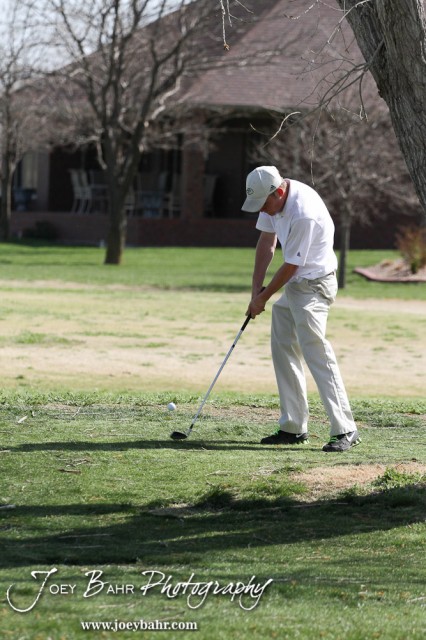 Garden City Buffalo Lucas Goss hits the ball during the Great Bend High School Boys Golf Invitational Tournament at The Club at Stoneridge in Great Bend, Kansas on April 29, 2013. (Photo: Joey Bahr, www.joeybahr.com)