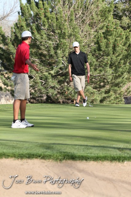 Liberal Redskin Blake Brenneman points to show the ball where to go during the Great Bend High School Boys Golf Invitational Tournament at The Club at Stoneridge in Great Bend, Kansas on April 29, 2013. (Photo: Joey Bahr, www.joeybahr.com)