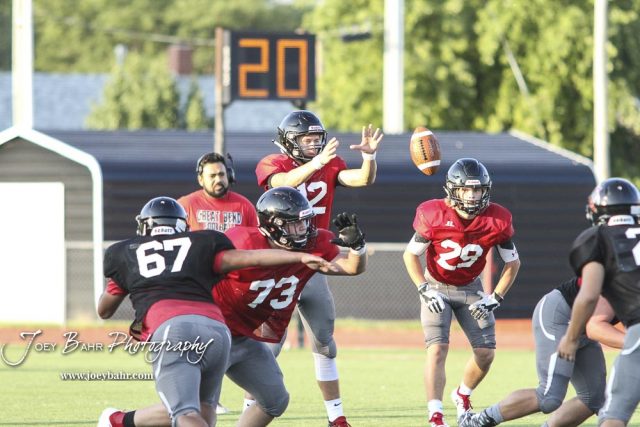 The Great Bend Panthers participated in the Red and Black Scrimmage at Memorial Stadium in Great Bend, Kansas on August 24, 2018. (Photo: Joey Bahr, www.joeybahr.com)undefined