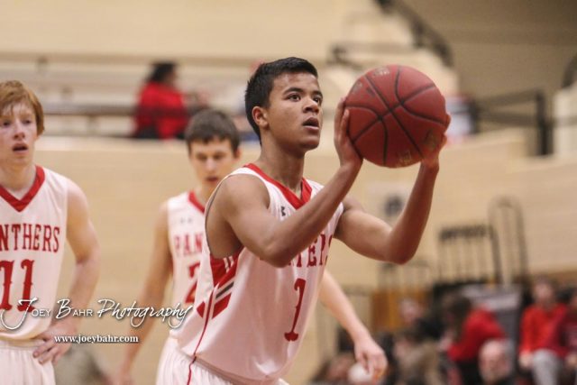 Great Bend Panther #1 Eric Woods shoots a free throw attempt. The Hays Indians defeated the Great Bend Panthers by a score of 51 to 37 at Great Bend High School in Great Bend, Kansas on January 10, 2017. (Photo: Joey Bahr, www.joeybahr.com)undefined