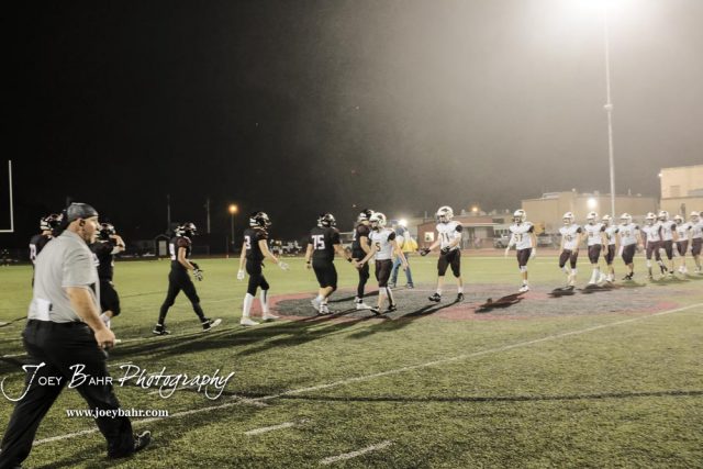 Members of the Hays Indians and Great Bend Panthers shake hands following the game. The Great Bend Panthers defeated the Hays Indians with a score of 15 to 7 at Memorial Stadium in Great Bend, Kansas on September 7, 2018. (Photo: Joey Bahr, www.joeybahr.com)undefined
