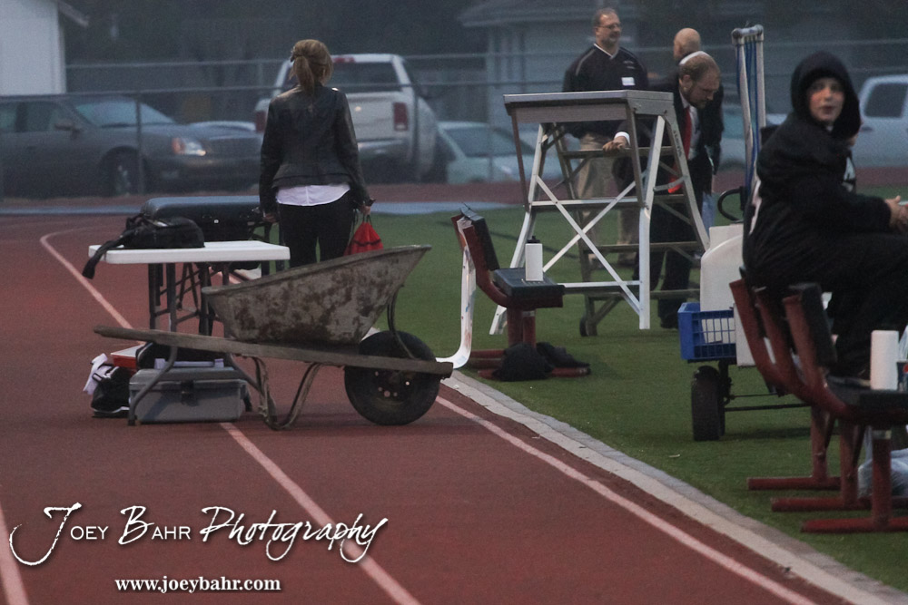 A wheelbarrow from Vernell “Shorty” Brack sits on the Great Bend Panther sideline for motivation during the Hays at Great Bend Football Game with a final score of 31 to 13 Hays at Memorial Stadium in Great Bend, Kansas on October 12, 2012. (Photo: Joey Bahr, www.joeybahr.com)
