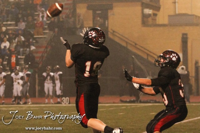 Great Bend Panther Hunter Harrison (#19) catches a Hays Indian kickoff during the Hays at Great Bend Football Game with a final score of 31 to 13 Hays at Memorial Stadium in Great Bend, Kansas on October 12, 2012. (Photo: Joey Bahr, www.joeybahr.com)