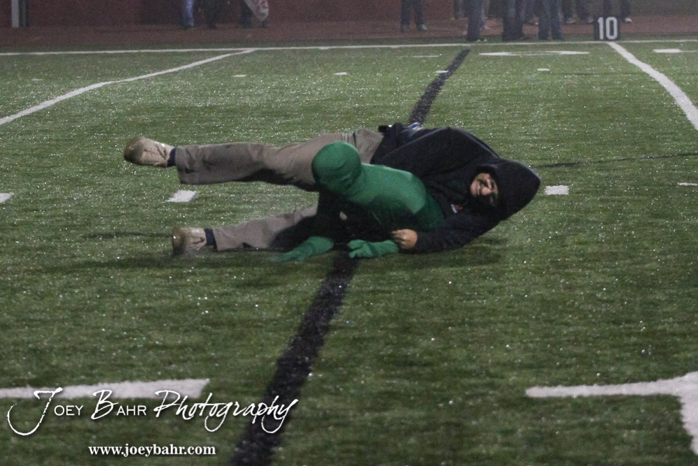 Great Bend High School Athletic Director David Meter tackles a streaker during the Hays at Great Bend Football Game with a final score of 31 to 13 Hays at Memorial Stadium in Great Bend, Kansas on October 12, 2012. (Photo: Joey Bahr, www.joeybahr.com)
