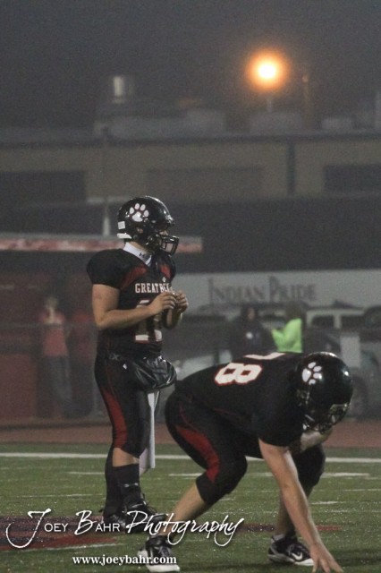Great Bend Panther Matt Marshall (#18) looks at the defense during the Hays at Great Bend Football Game with a final score of 31 to 13 Hays at Memorial Stadium in Great Bend, Kansas on October 12, 2012. (Photo: Joey Bahr, www.joeybahr.com)