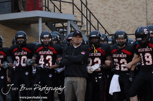 Great Bend Panther Head Coach Bo Black waits to lead his team onto the field before the Hays at Great Bend Football Game with a final score of 31 to 13 Hays at Memorial Stadium in Great Bend, Kansas on October 12, 2012. (Photo: Joey Bahr, www.joeybahr.com)
