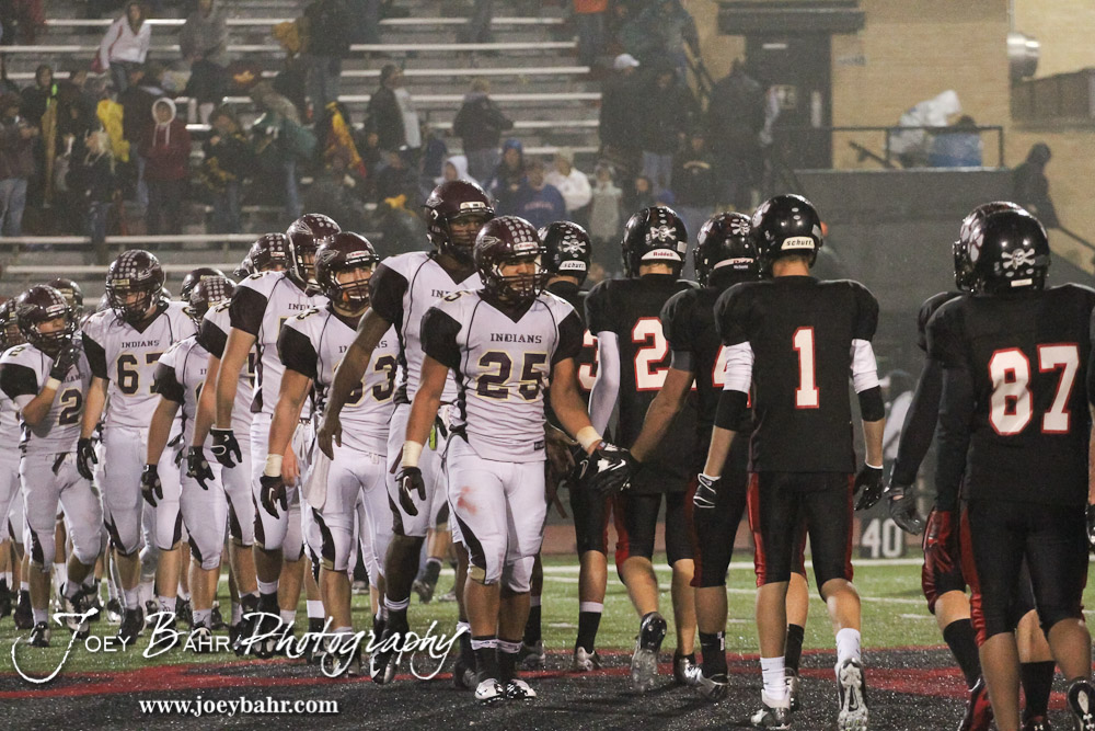 Members of the Hays Indians and Great Bend Panthers shake hands after the Hays at Great Bend Football Game with a final score of 31 to 13 Hays at Memorial Stadium in Great Bend, Kansas on October 12, 2012. (Photo: Joey Bahr, www.joeybahr.com)