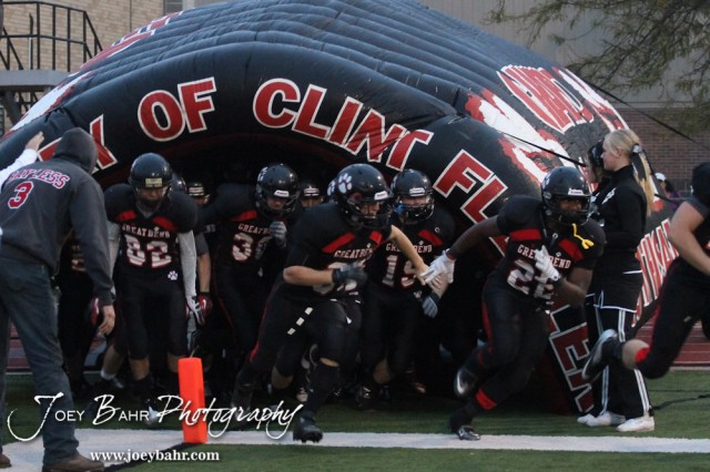 The Great Bend Panthers run onto the field before the Hays at Great Bend Football Game with a final score of 31 to 13 Hays at Memorial Stadium in Great Bend, Kansas on October 12, 2012. (Photo: Joey Bahr, www.joeybahr.com)