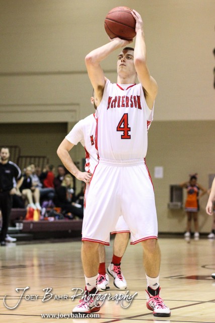 McPherson Bullpup Kyle Smith (#4) shoots a free throw during the 4A Division I Sub-State First Round Game with the McPherson Bullpups and Ulysses Tigers with McPherson winning 84 to 40 at Hays High School in Hays, Kansas on March 5, 2015. (Photo: Joey Bahr, www.joeybahr.com)