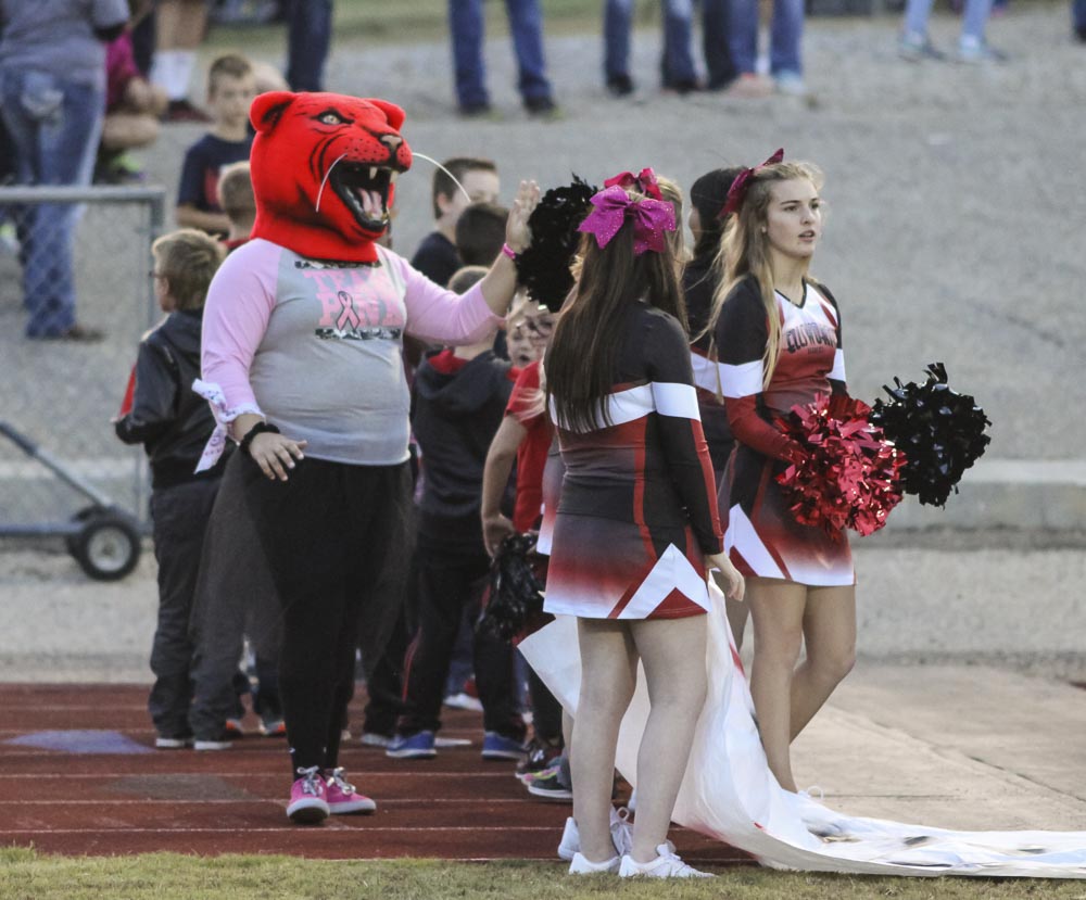 The Ellsworth Bearcat mascot greets fan before the game. The Hoisington Cardinals defeated the Ellsworth Bearcats 39 to 20 at Shanelac Field in Ellsworth, Kansas on October 14, 2016. (Photo: Joey Bahr, www.joeybahr.com)undefined