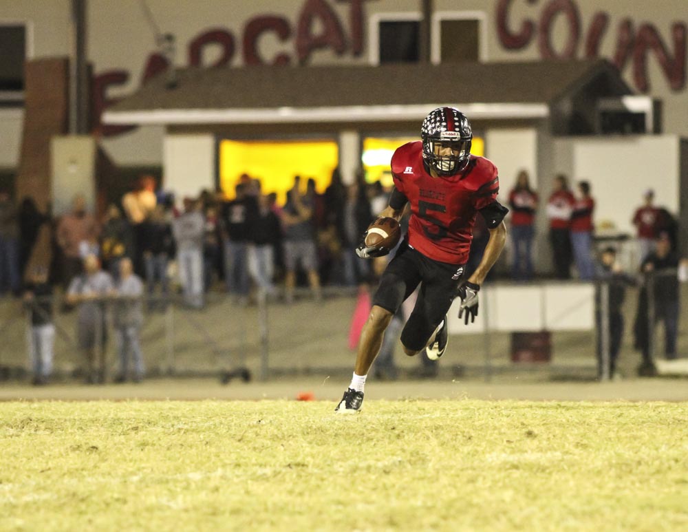 Ellsworth Bearcat Jordan Base (#5) carries the ball. The Hoisington Cardinals defeated the Ellsworth Bearcats 39 to 20 at Shanelac Field in Ellsworth, Kansas on October 14, 2016. (Photo: Joey Bahr, www.joeybahr.com)undefined