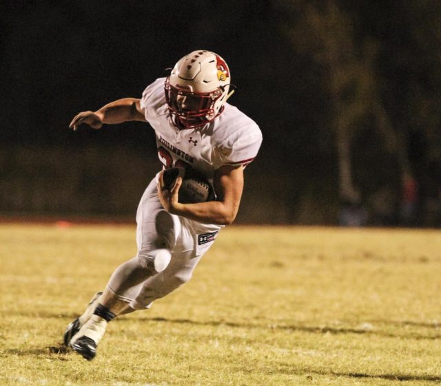 Hoisington Cardinal Sean Urban (#23) carries the ball. The Hoisington Cardinals defeated the Ellsworth Bearcats 39 to 20 at Shanelac Field in Ellsworth, Kansas on October 14, 2016. (Photo: Joey Bahr, www.joeybahr.com)undefined