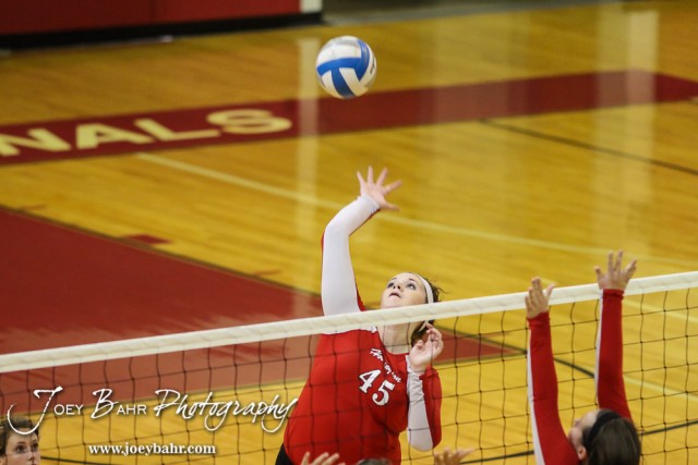 During the Hoisington High School Volleyball Scrimmage at Hoisington Activity Center in Hoisington, Kansas on August 27, 2015. (Photo: Joey Bahr, www.joeybahr.com)undefined