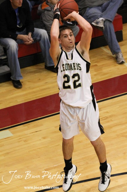 Tayler Stull (#22) of the LaCrosse Leopards takes a shot against the Ellinwood Eagles at the 2012 Hoisington Winter Jam Basketball Tournament.