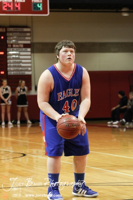 Garrett Hayes (#40) of the Ellinwood Eagles prepares to take a free throw against the LaCrosse Leopards at the 2012 Hoisington Winter Jam Basketball Tournament.