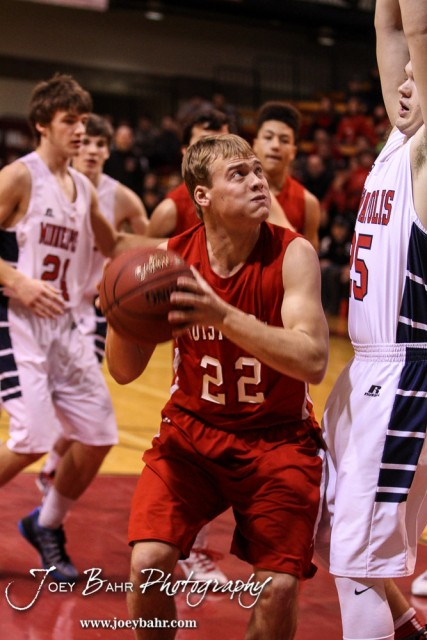 during the 2016 Hoisington Winter Jam Boys Championship Basketball game between the Hoisington Cardinals and the Minneapolis Lions with Hoisington winning 39 to 38