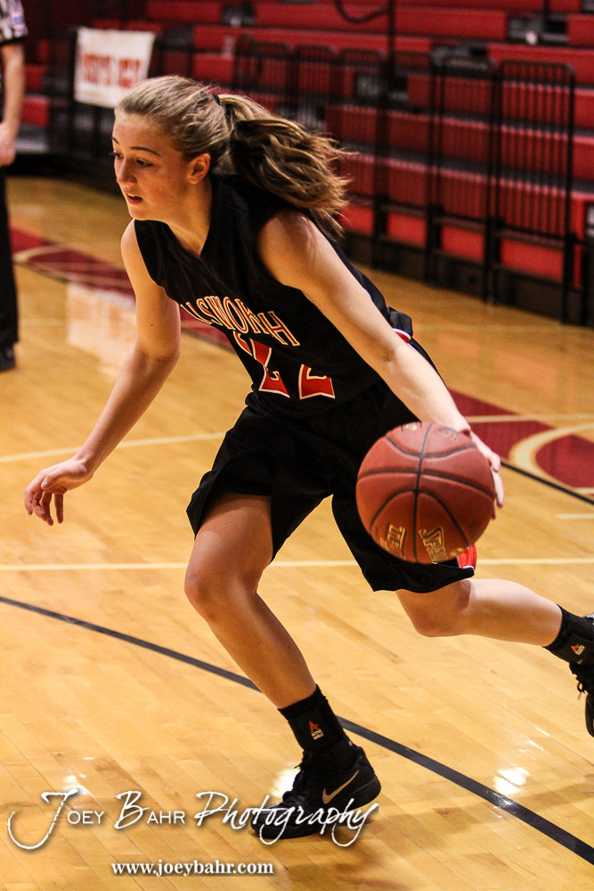 during the 2016 Hoisington Winter Jam Girls Fifth Place Basketball game between the Otis-Bison Lady Cougars and the Ellsworth Lady Bearcats with Otis-Bison winning 46 to 40
