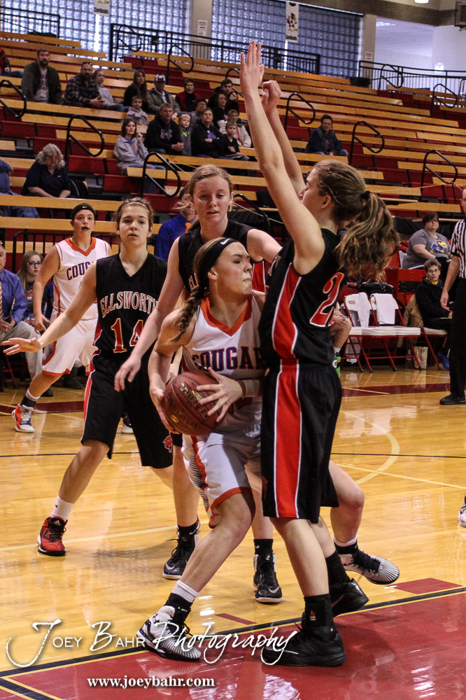 during the 2016 Hoisington Winter Jam Girls Fifth Place Basketball game between the Otis-Bison Lady Cougars and the Ellsworth Lady Bearcats with Otis-Bison winning 46 to 40