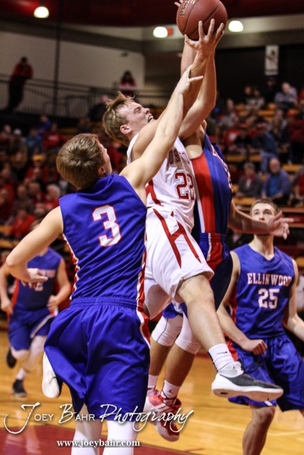 during the 2016 Hoisington Winter Jam Boys Semi-Final Basketball game between the Hoisington Cardinals and the Ellinwood Eagles with Hoisington winning 42 to 39