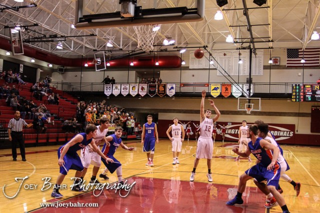 during the 2016 Hoisington Winter Jam Boys Semi-Final Basketball game between the Hoisington Cardinals and the Ellinwood Eagles with Hoisington winning 42 to 39
