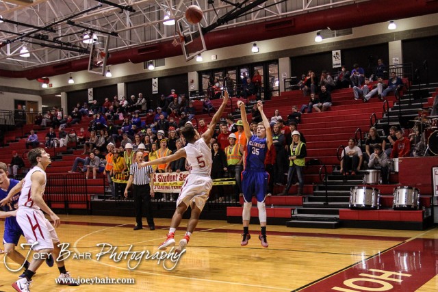 during the 2016 Hoisington Winter Jam Boys Semi-Final Basketball game between the Hoisington Cardinals and the Ellinwood Eagles with Hoisington winning 42 to 39