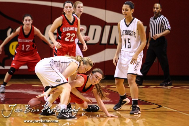 during the 2016 Hoisington Winter Jam Girls Semi-Final Basketball game between the LaCrosse Lady Leopards and the Hoisington Lady Cardinals with LaCrosse winning 42 to 39