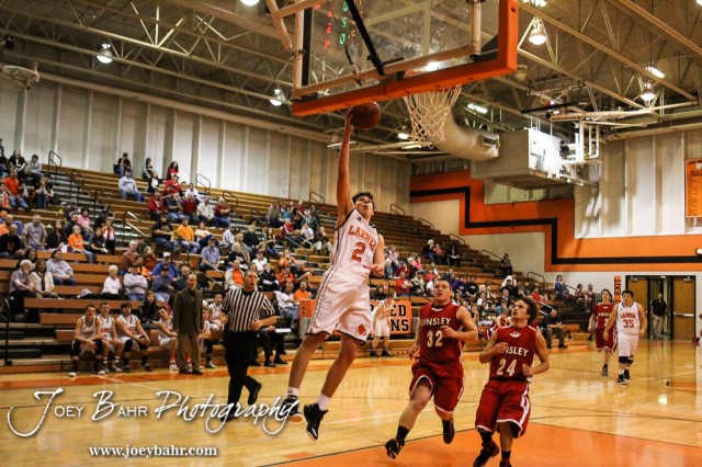 during the Seventh Annual Keady Basketball Classic First Round game between the Larned Indians and the Kinsley Coyotes with Larned winning 87 to 35
