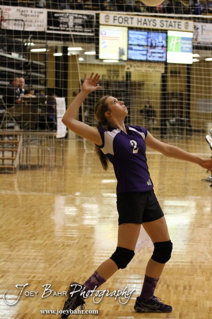 Wilson Lady Dragon McKenzie Thrasher (#2) serves during the Wilson versus Southern Coffey County KSHSAA Class 1A Division II State Volleyball Pool II match with Wilson winning 25-11, 25-8 in Hays, Kansas on October 26, 2012. (Photo: Joey Bahr, www.joeybahr.com)