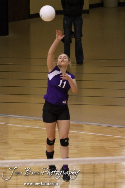 Wilson Lady Dragon Karlie Steinle (#11) serves the ball during the Wilson versus Southern Coffey County KSHSAA Class 1A Division II State Volleyball Pool II match with Wilson winning 25-11, 25-8 in Hays, Kansas on October 26, 2012. (Photo: Joey Bahr, www.joeybahr.com)