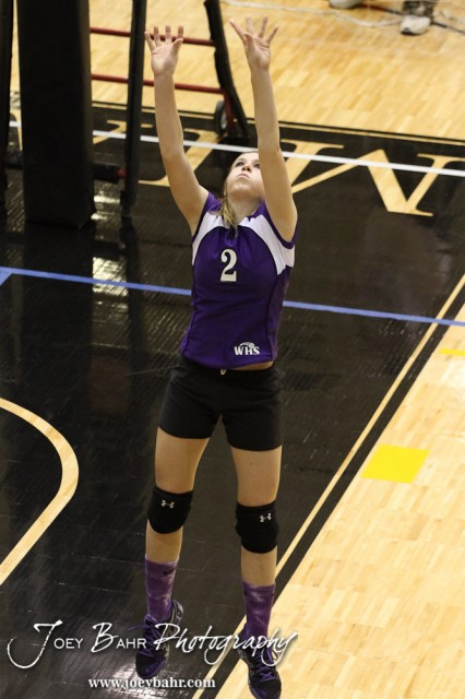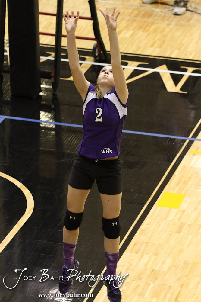 Wilson Lady Dragon McKenzie Thrasher (#2) sets the ball during the Wilson versus Southern Coffey County KSHSAA Class 1A Division II State Volleyball Pool II match with Wilson winning 25-11, 25-8 in Hays, Kansas on October 26, 2012. (Photo: Joey Bahr, www.joeybahr.com)