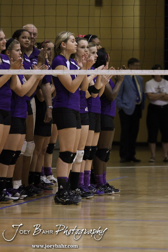 The Wilson Lady Dragons line up for the start of the Wilson versus Weskan KSHSAA Class 1A Division II State Volleyball Pool II match with Weskan winning 26-24, 25-12 in Hays, Kansas on October 26, 2012. (Photo: Joey Bahr, www.joeybahr.com)