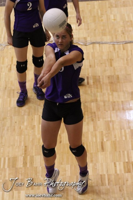 Wilson Lady Dragon Janell Ptacek (#15) warms up before the Wilson versus Weskan KSHSAA Class 1A Division II State Volleyball Pool II match with Weskan winning 26-24, 25-12 in Hays, Kansas on October 26, 2012. (Photo: Joey Bahr, www.joeybahr.com)