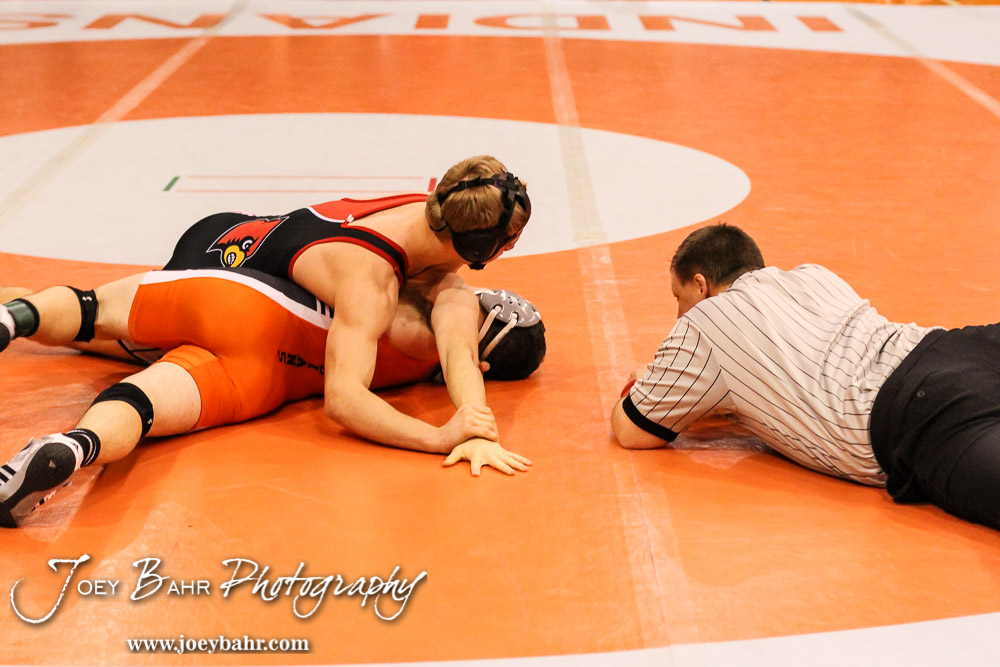 during the Larned Varsity Duals Wrestling meet at Larned Middle School in Larned, Kansas on January 8, 2015. (Photo: Joey Bahr, www.joeybahr.com)